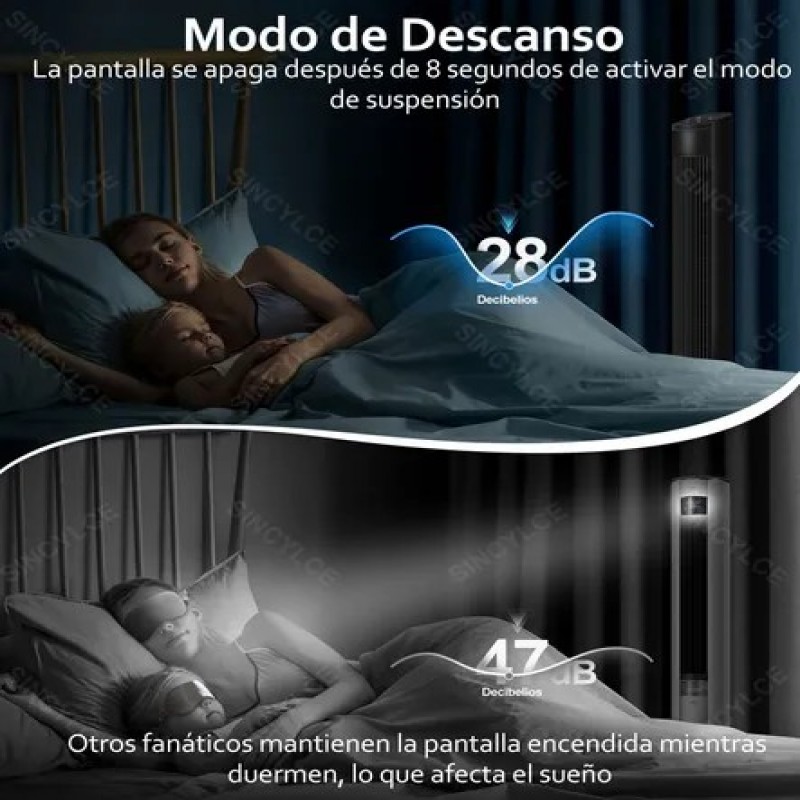 El ventilador de torre está equipado con una pantalla de