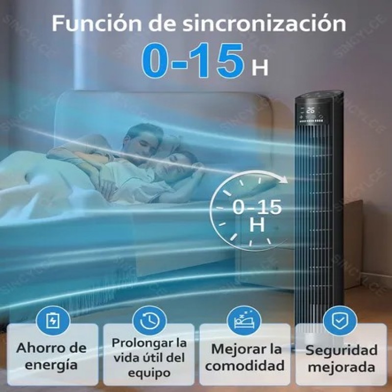 El ventilador de torre equipado con un control remoto tiene